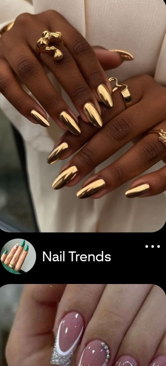 High-gloss chrome finishes remain a major hit, delivering a mirror-like metallic sheen that works with neutral bases or bold colors.