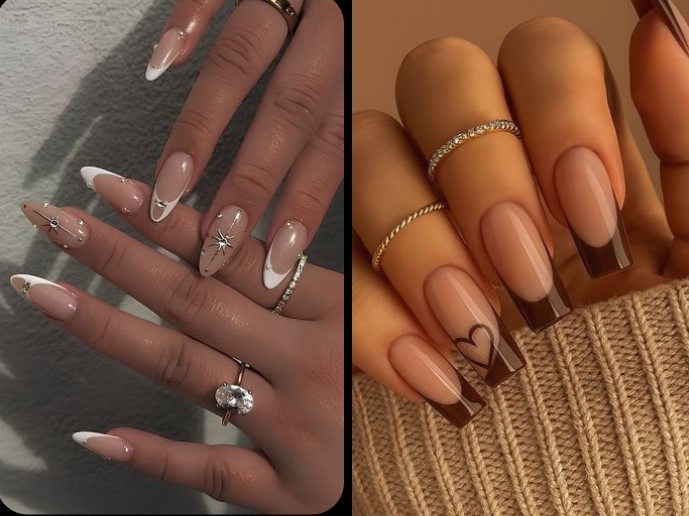 Classic French gets modern with colored tips, metallic lines, or asymmetrical edges.